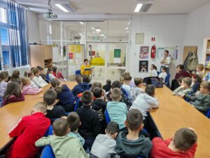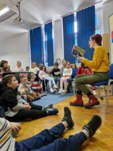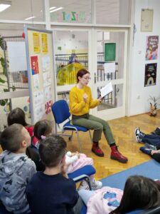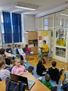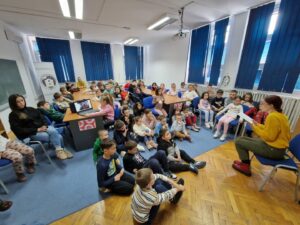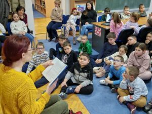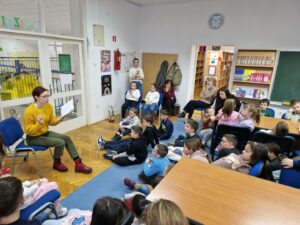 Učenici razredne nastave, 1.a, 1.b, 2.a, 2.b te 4.a razreda zajedno s učiteljicama i asistenticama, ispunili su knjižnicu i razveselili se kad nam je u goste došla Đana Krvavica, akademska glumica i novinarka Hrvatskog Radio Knina. Đana nam je čitala Šumu Striborovu, autorice Ivane Brlić Mažuranić koju još nazivaju i hrvatski Andersen.